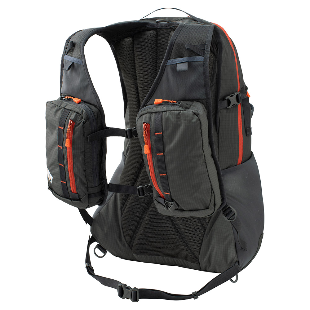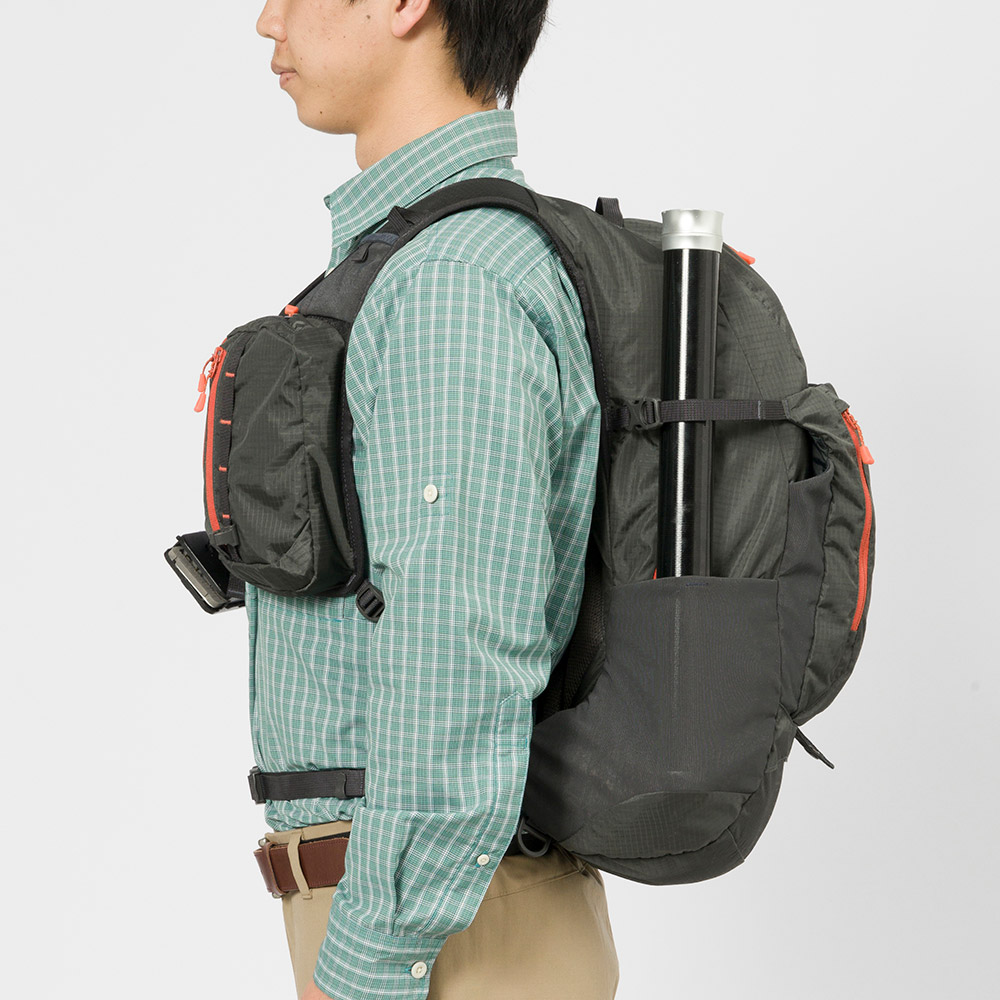 必要な道具を効率的に収納できる多彩なポケットを備えた、フィッシング用軽量バックパックです。登山用バックパックの開発で培われたノウハウを投入。本体には軽量性と耐久性を兼ね備えた生地、バックパネルとショルダーハーネスには通気性に優れ、蒸れにくい3Dメッシュを使用しています。フィット感に優れ、荷物の揺れも少なく、ポイントを探りながら軽快に行動するフィッシングスタイルに適しています。