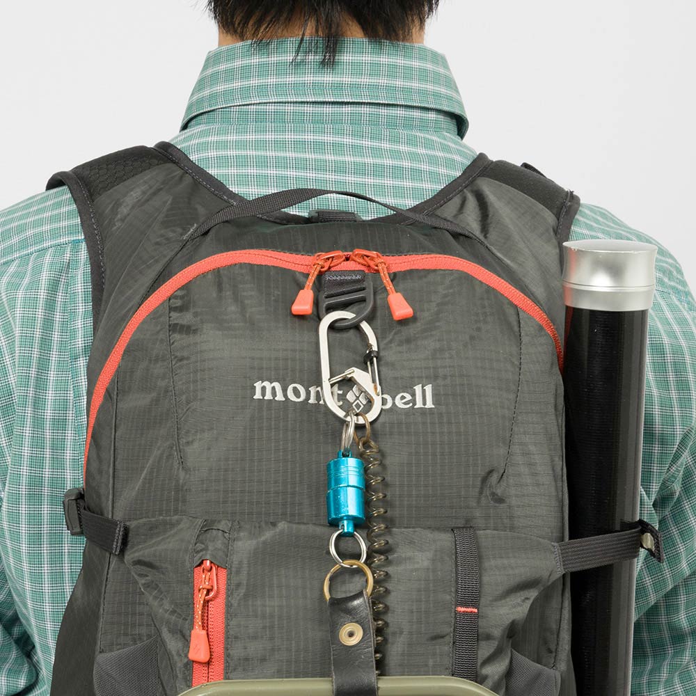 B: フロントに2カ所、ボトムの両サイドに1カ所ずつの計4カ所にリーシュ用のDカンを装備。ランディングネットやフィッシュグリップなどの装着に便利です。