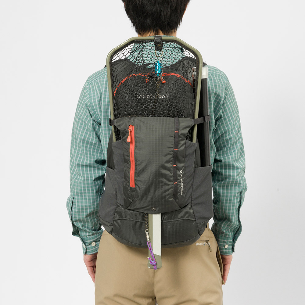 背面(DGY) モデル身長171cm/Mサイズ着用 モデル身長171cm/Mサイズ着用 モデル身長171cm/Mサイズ着用 ランディングネットとロッドケースを取り付けた状態。 メイン荷室にオートロックジッパーを使用することで、ロッドケースを差し込んで移動することも可能。 リーシュ用のDカンを装備。 フロントポケットには頻繁に差し入れする小物を収納可能。 アクセスしやすい大型ポケット。 使用例 ランディングネットを収納できるポケット。 ロッドケースをサイドに取り付けた状態。