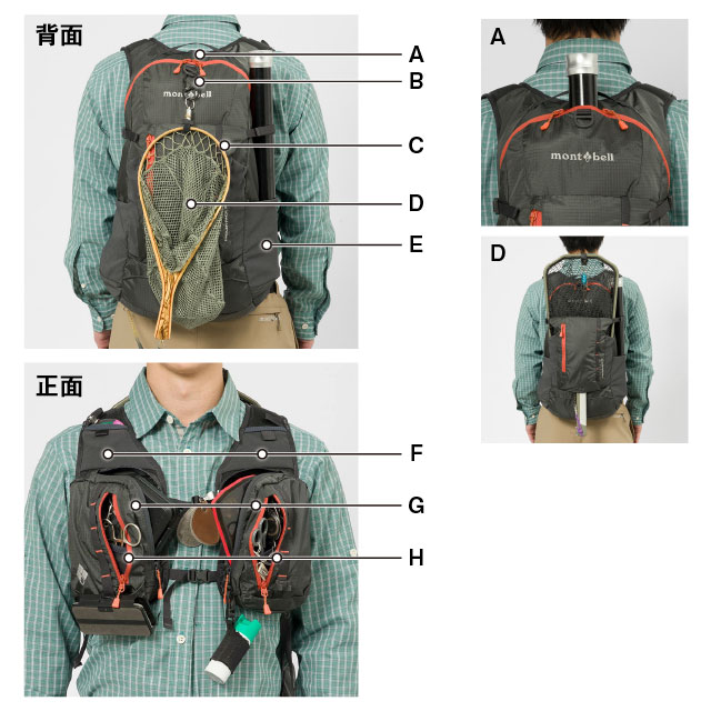 D: ランディングネットを収納できるポケット。