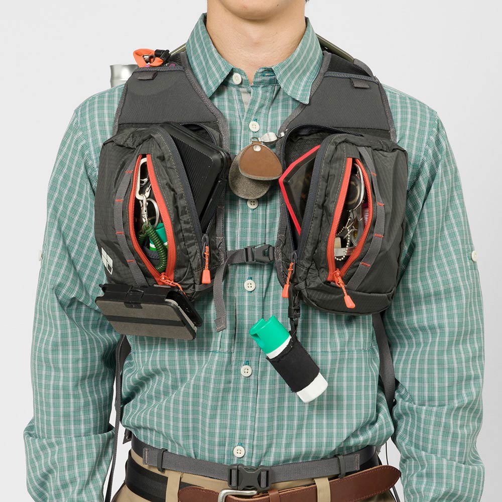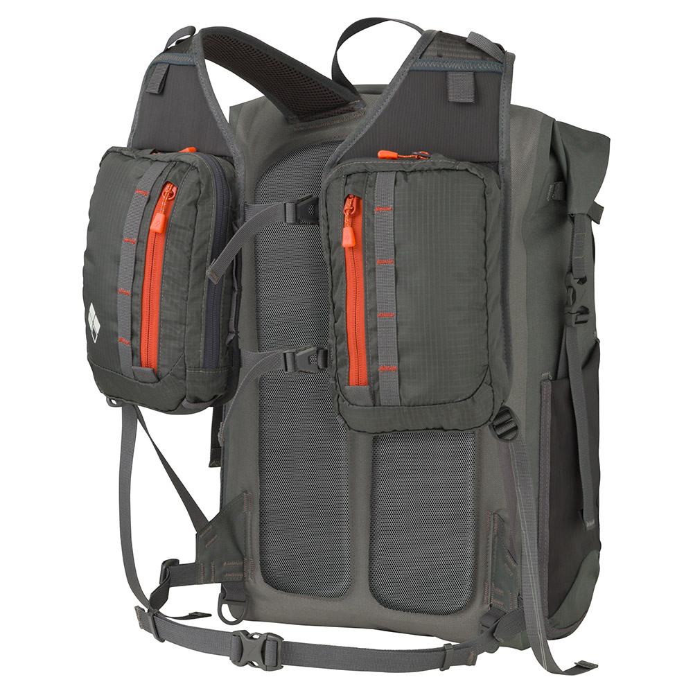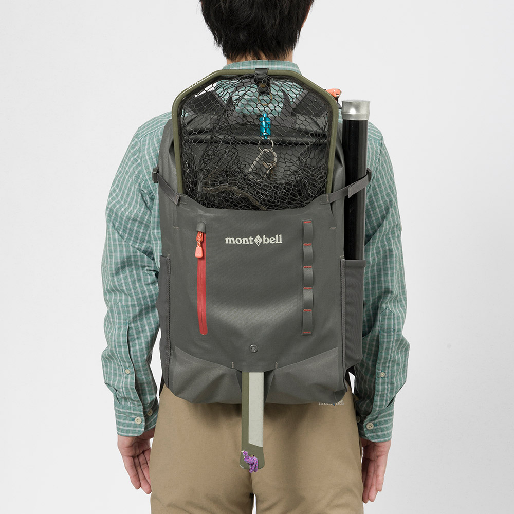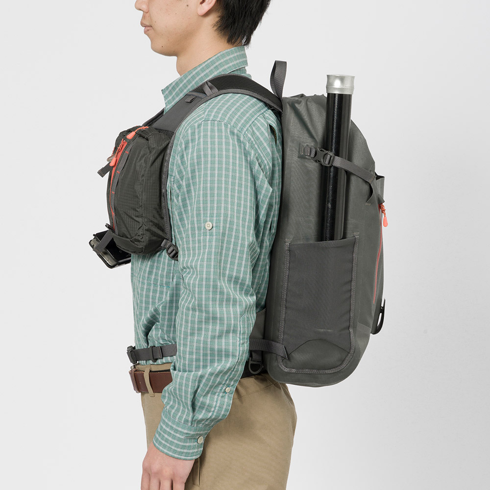 川や湖、海での立ち込みや雨天時の釣りで活躍するバックパックです。メイン気室は、防水性に優れた生地の縫い目をウェルダー加工(熱溶着)で接合し、浸水を防ぐロールアップ方式を搭載。背面のアクアテクト®ジッパーポケットや、出し入れがしやすい大きなチェストポケットなど、フィッシングギアの収納・装着に必要な多彩な機能を備えています。バックパネルとショルダーハーネスには通気性に優れ、蒸れにくい3Dメッシュを使用しています。