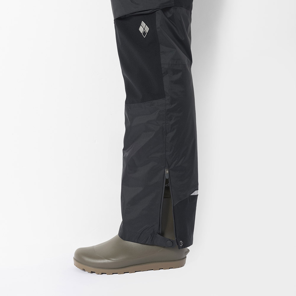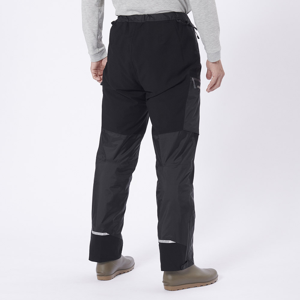 【特長】アクアテクト®ジッパー / 立体裁断 / バックル付きベルト / フロントジッパー付き / サスペンダーが外れにくい仕様 / サイドポケット内部にリーシュ用のループ付き / 両側に釣り用の小物を掛けられるループ付き / リフレクター付き / スタッフバッグ付き / 反射テープ(裾)