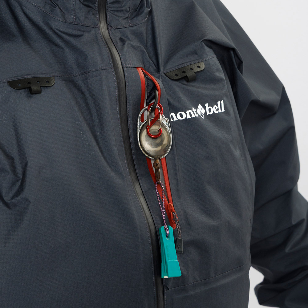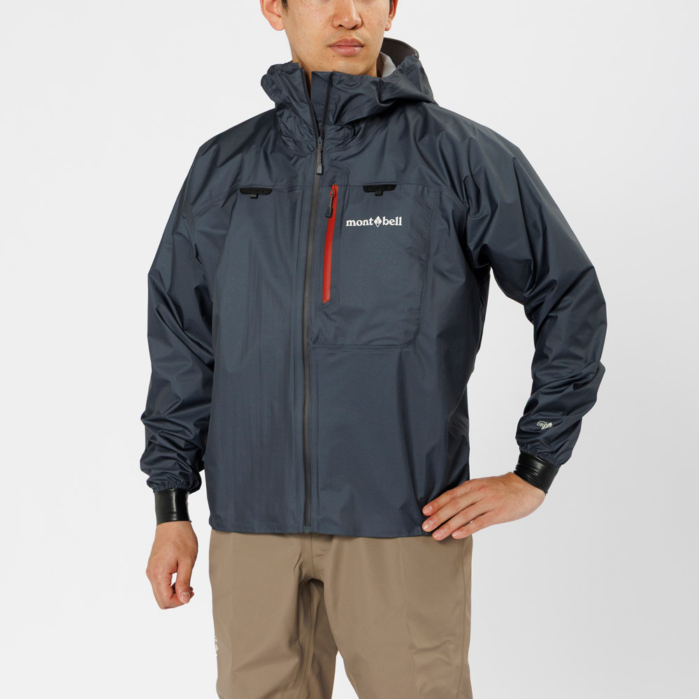 フィッシングベストの上から着用できる、超軽量コンパクトなフィッシング用レインジャケットです。非常に高い透湿性を持つモンベル独自の防水透湿性素材「スーパー ドライテック®」を使用。生地表面にはっ水加工を施しています。ウエイディングを前提とした短めの丈です。