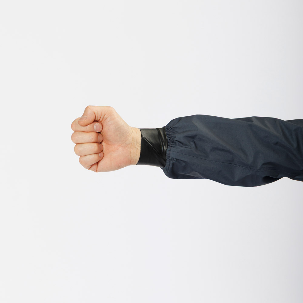 本製品は縫い目を目止め(シームテープ)処理することで身体側に水が浸入しないように設計されていますが、構造上ポケットの内部は浸水する恐れがあります。貴重品等は防水ケースに入れるなどして防水対策をしてください。