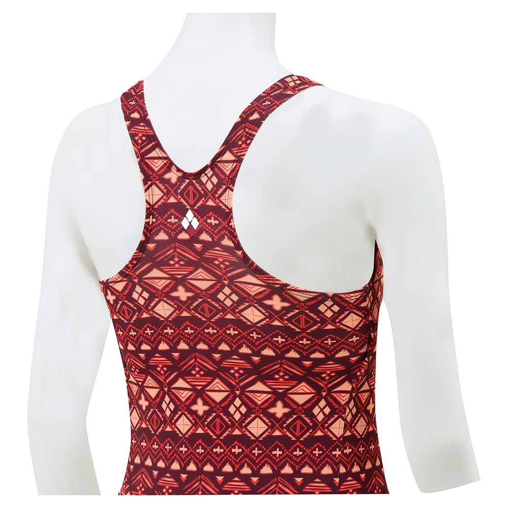 ストレッチ性を備え、保水しにくい素材を使用し、ストレスのない快適な着用感です。カヤックやスノーケリングなどのウォーターアクティビティに最適。華やかなプリント柄を配し、単体での着用はもちろん、パドリングウエアのアンダーとして、またプールでの使用にも活躍します。取り外しできるカップ付きです。