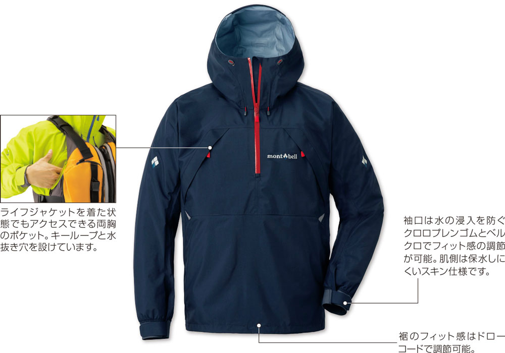 海や穏やかな川でのツーリングやレクリエーションに適したアノラックです。独自の防水透湿性素材を使用し、全ての縫い目にシームテープ処理を施すことで、優れた防水性を実現。パドリングしやすいパターンを使用し、細かなフィット感の調節が可能なフードや、水の浸入を防ぐクリマプレン®製の袖口など、パドリングに必要な機能を備えています。