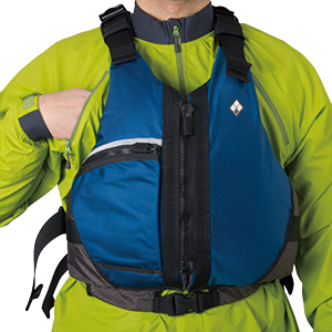 ライフジャケットを着たままでもアクセス可能な胸ポケット。防水カメラや行動食などを収納できます。