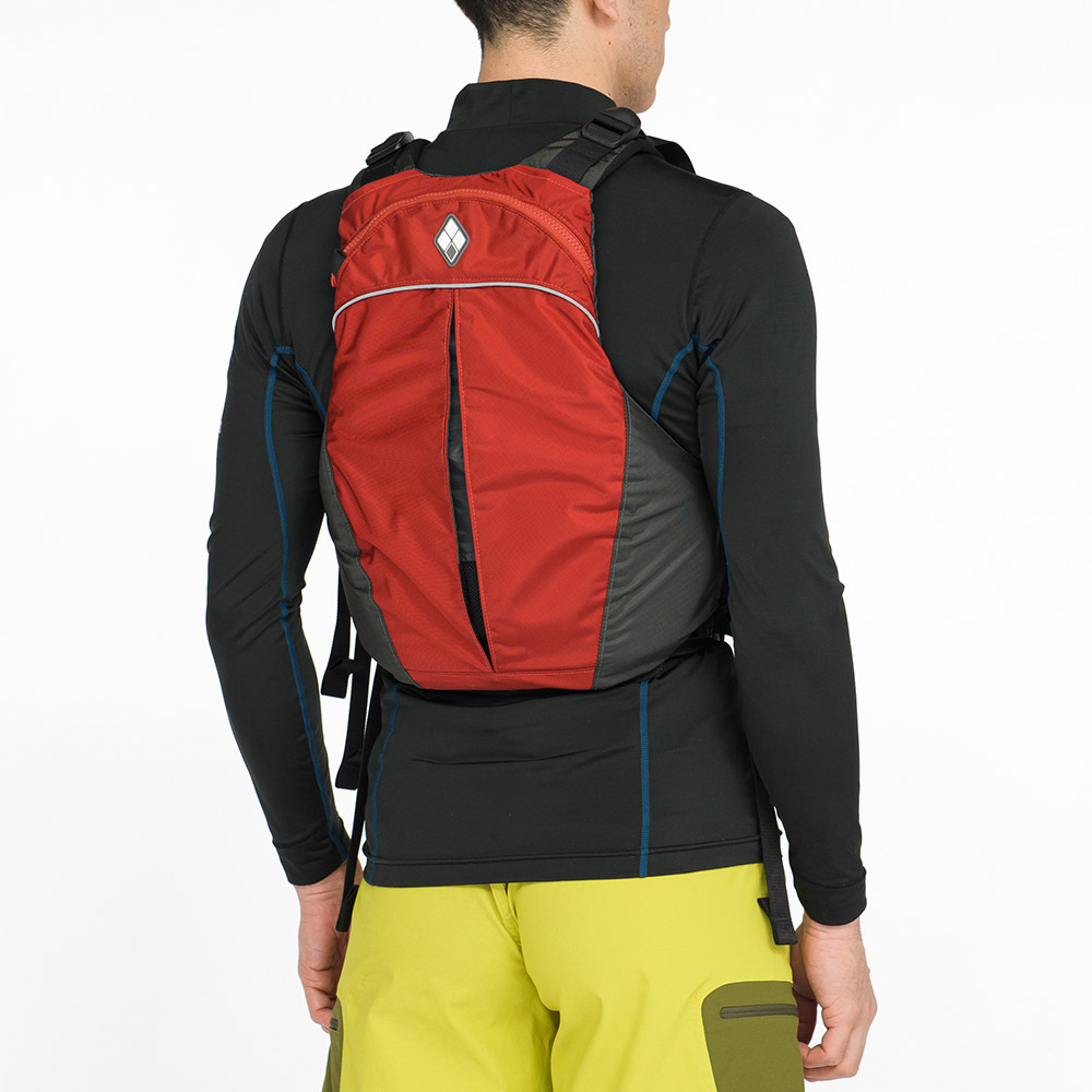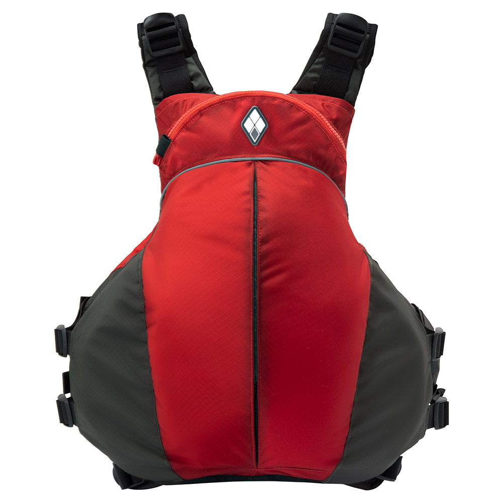 スタンドアップパドルボード(SUP)を安全に楽しむために開発したライフジャケットです。体の形に合わせてフォームを立体成型することで優れたフィット感を実現。背面の生地を横方向に伸びる構造にすることでパドリング時のあらゆる動きに追従し、非常に高い運動性としめつけ感の少ない着心地です。カヤック用ライフジャケットと同等の浮力を備えながらも、着丈を長くし前面のフォームを薄く設計することでSUPへの再乗艇がしやすくなっています。背面ポケットにはトレールウォーターパック(別売・2.0Lまで対応)を装着でき、効果的に水分補給が可能です。