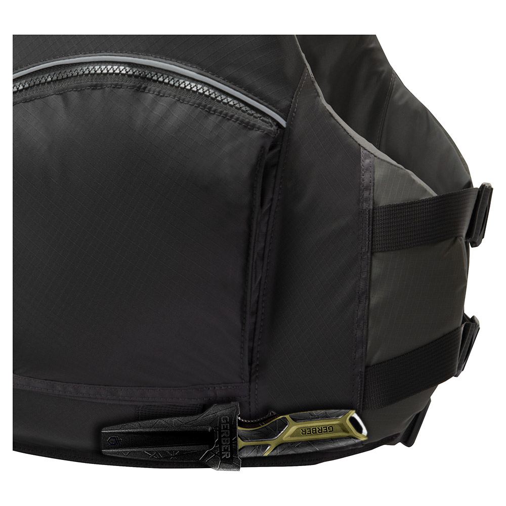 激流下りやフリースタイルプレイなど、激しい動きに対応する運動性を重視した着丈の短いシンプルなライフジャケットです。体の形に合わせてフォームを立体成型することで優れたフィット感を実現。背面の生地を横方向に伸びる構造にし、アームホールを大きくすることでパドリング時のあらゆる動きに追従し、非常に高い運動性としめつけ感の少ない着心地です。胸部に大型ポケットを備えています。