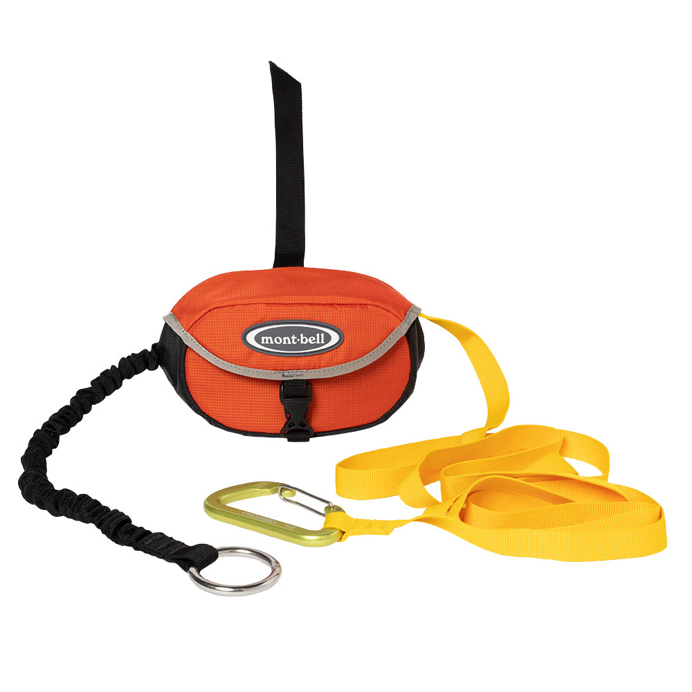 シーカヤックなどで他の艇を安全に牽引するためのレスキューギアです。海面に浮くポリプロピレン製のテープは長さが10mあり、うねりが高い海でも艇同士の接触を回避できます。テープを紫外線から守る収納ケースの内側にはカラビナホルダーがあり、レスキュー用ライフジャケットの左右どちらにも装着が可能です。