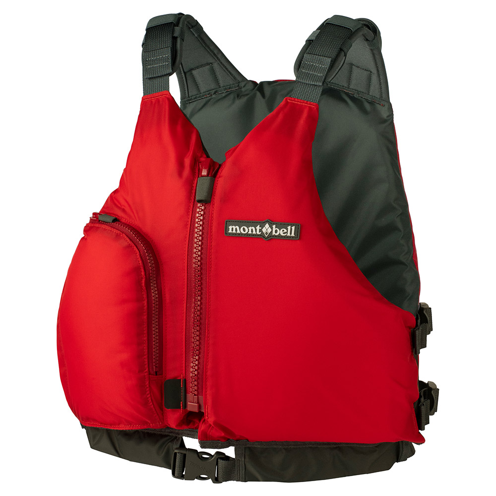 モンベルのライフジャケットは、カヤックやカヌー、ラフティング用に開発されたベストであり、海難救助用の救命胴衣とは規定・使用目的が異なります。ご留意の上、添付の説明書をよく読んでご使用ください。