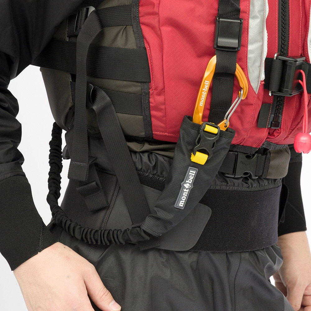 本製品はモンベルのライフジャケットと別売のトウイングライン用ベルト用に開発されたものです。購入前に取扱説明書をご確認ください。