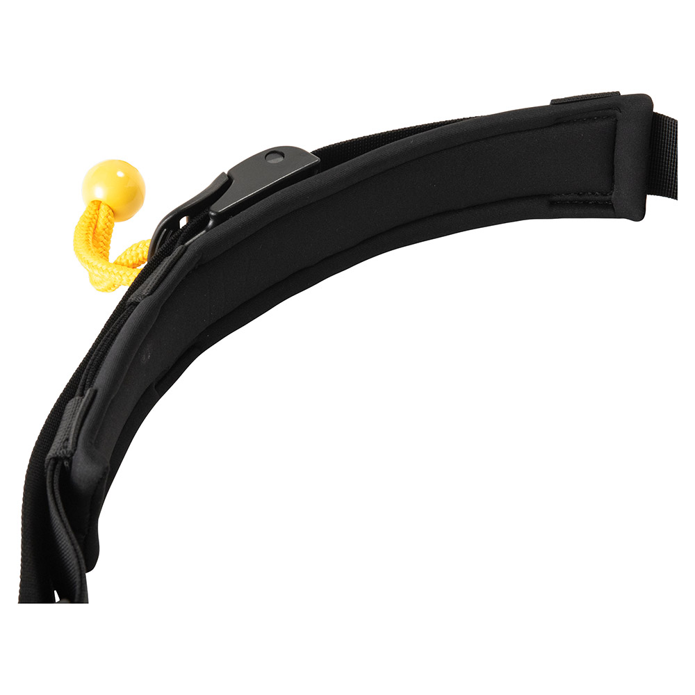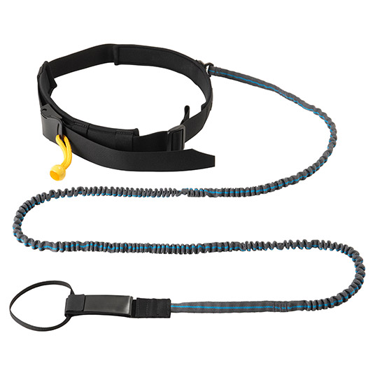 海上でスタンドアップパドルボード(SUP)が流されないように身体とボードを繋いでおくための安全装備です。SUPでのレクリエーションやツーリング時の必需品です。自身のウエストに巻き付けて使用し、万一の際は素早く外すことができるようになっています。リーシュ部分には伸縮性・軽量性に優れた素材を使用、ねじれを抑えるスイベルが付いています。