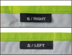 取り外した袖や膝部分には、左右を見分けるためのタグが付いています。