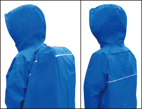 デイパックやランドセルを背負ったままでも着用できるレインコートです。薄手でしなやかな生地に独自の防水透湿性素材を組み合わせることで、動きやすく快適な着心地を実現しています。コンパクトに収納できるので持ち運びも便利です。