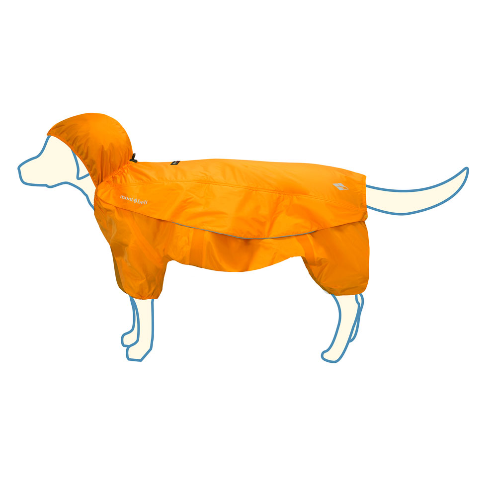 雨や泥から愛犬を守るフルレインスーツです。首回りはドローコードで、胴回りはベルクロでフィット感を調節できます。オスでも用足しが行えるよう下腹部から尻尾にかけては生地が開いた状態になっています。背面首元にリーシュを通せる穴があるため、カラー(首輪)の上から着用できます。夜間のお散歩でも安全な反射マーク付き。収納袋付き。