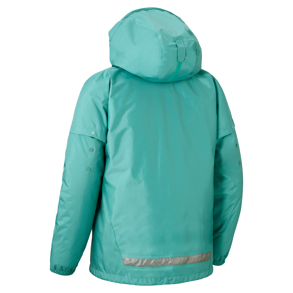 独自開発の防水透湿性素材ドライテック®を使用した、レインウエア。スナップボタンで簡単にサイズ調整が行えるグローフィットシステムを搭載。3段階調整で身長幅20cmに対応し、子供の成長に合わせ長く着用できます。フードの調節機能やアクアテクト®ジッパーなど、さまざまな機能をバランスよく備え、背面に反射テープを配するなど、使いやすさと安全性にも配慮。トレッキングから通学まで幅広く活躍します。