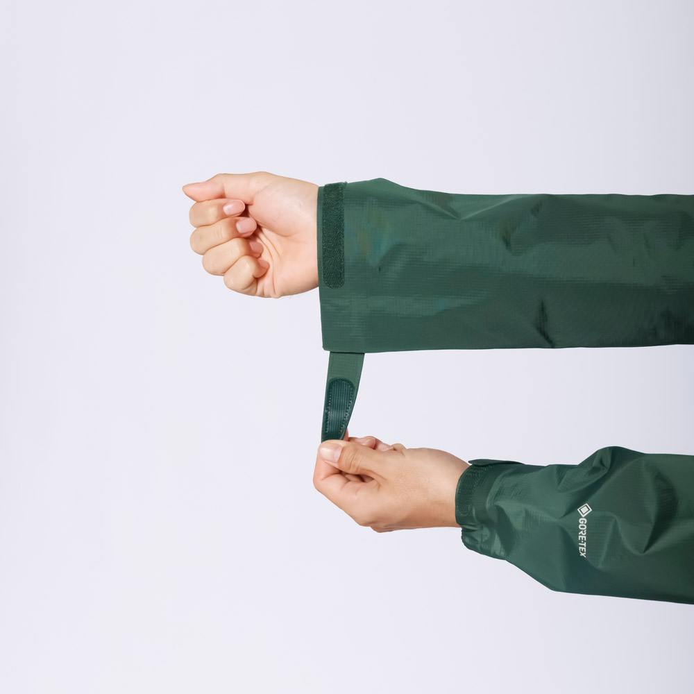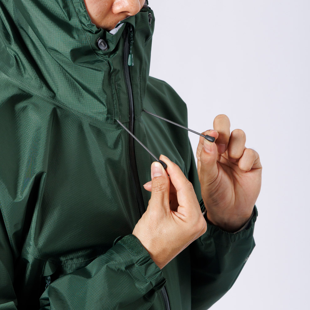 【特長】K-Mono CUT / 運動性を高める独自のパターン / ネームタグ付き / トライアクスルフード / ロールアップフード / アクアテクト®ジッパー / アルパインカフ / 縫い目を減らし、保水しにくい接着加工(袖口) / 裾の調節機能 / スタッフバッグ付き