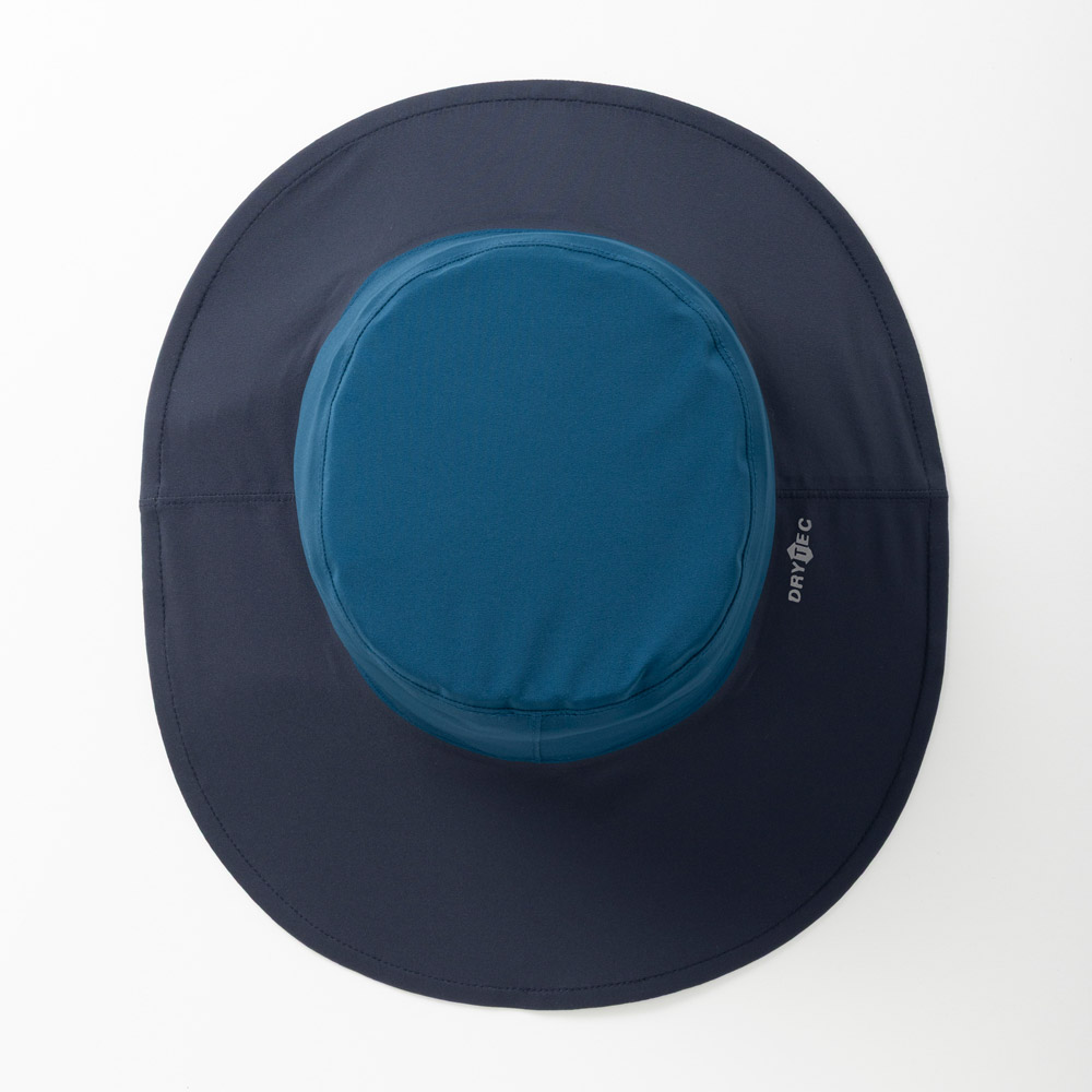 コットンのような風合いながらも、透湿性・耐久性に優れた防水透湿性素材の全天候型ハットです。ツバ後部をやや長めに設定したデザインで、襟首への不快な雨だれも防ぎます。