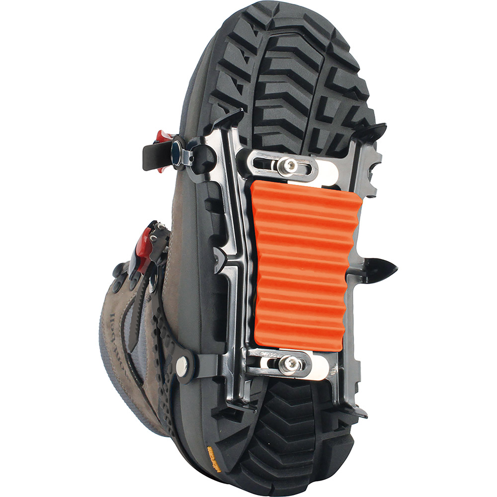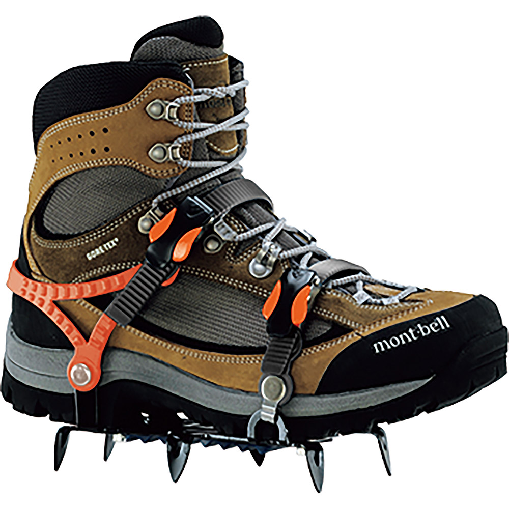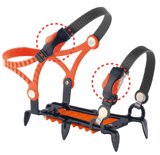 雪山の軽登山や夏の雪渓歩行に最適な6本爪タイプのスノースパイクです。操作性と安全性を両立した独自のラチェットバックル(特許取得済)を採用し、ラチェット部分への雪の詰まりや、岩などへの引っ掛かりによる不意のリリースを防ぎます。ベルト部分には、柔らかく、低温でも硬化しにくい素材を用いることで、高いフィット感と収納性を実現。足幅に合わせてサイズ調整することができます。スタッフバッグ付き。左右一足分セット。 ※幅調整用六角レンチ1本付属