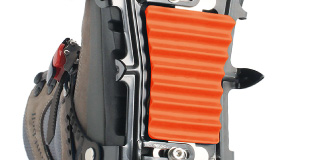 不意の解放を防ぐために、赤いレバーを2つ同時に引き上げることで解放が可能な、安全性の高いモンベル独自開発のラチェットバックルを装備。(特許取得済)
