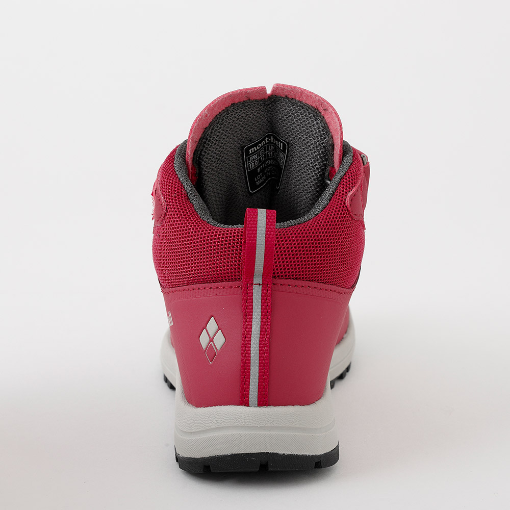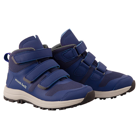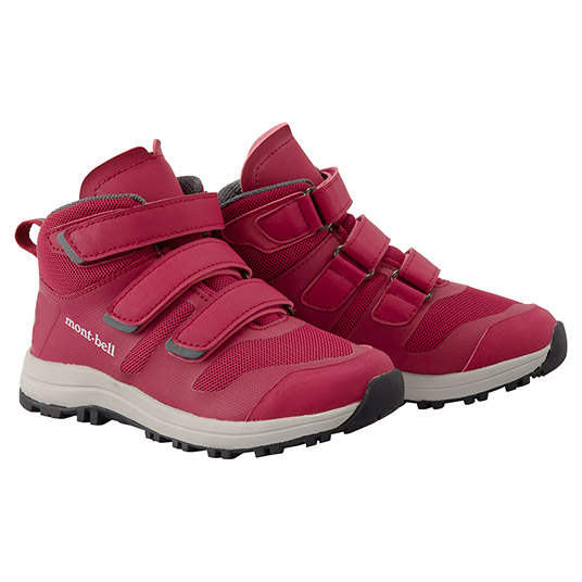 ハイキングや林間学校に適した子ども用ブーツです。全面に通気性に優れたメッシュ素材を使用し、部分的に補強を施しています。柔らかな履き心地で、足全体を優しく包み込みます。独自開発の子供用ラストにより、フィット感を高め、グリップ力の良い独自パターンのソールを搭載し、快適な歩行をサポートします。かかとには夜間の視認性を高める反射テープ付き。小さな子どもでも脱ぎ履きしやすいベルクロのみの仕様です。※防水性はありません。