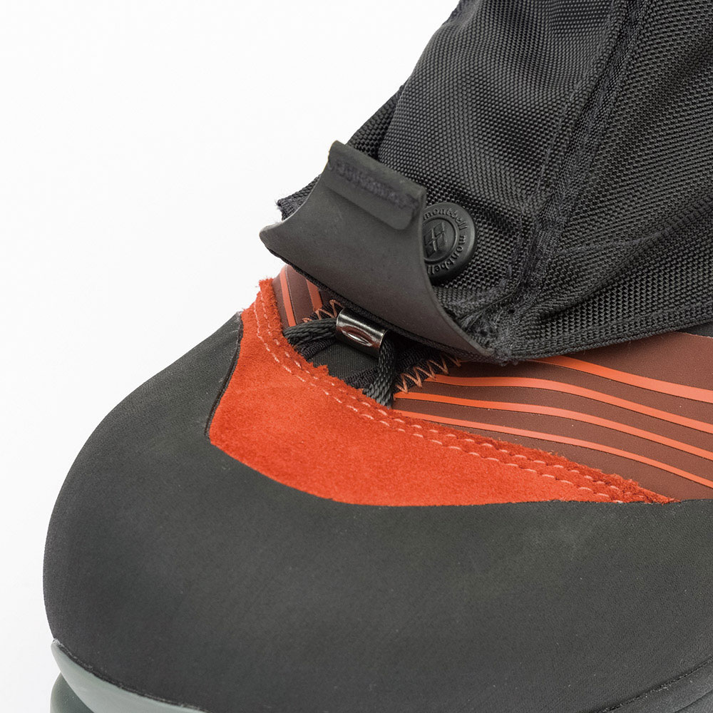 ゲーターには防風性・保温性・ストレッチ性に優れた素材を使用。表地にははっ水加工、裏地には起毛加工を施しています。これにより雪の付着や浸入を防ぎ、内側を保温します。高いストレッチ性は優れたフィット感を生み出し、足首の動きを妨げません。