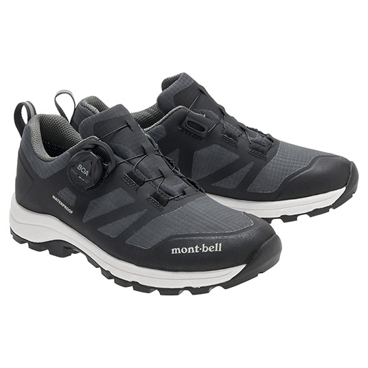 低山ハイクやキャンプで活躍する全天候型のローカットシューズです。防水透湿性素材を使用しているので、水たまりやぬかるみを歩いても水が浸入しにくくなっています。脱ぎ履きしやすいBOA®フィットシステムを搭載しています。