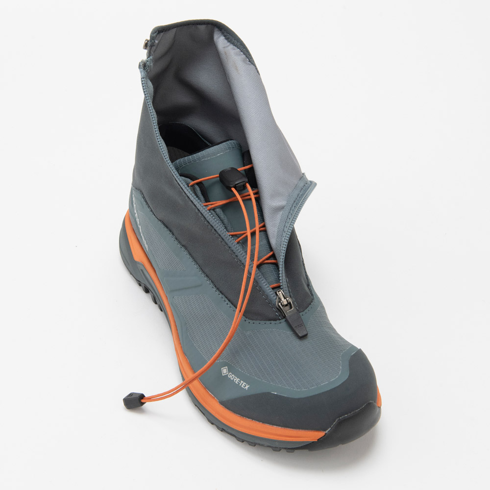 低山ハイキングや自然散策に適した全天候型ローカットシューズです。防滴性とストレッチ性のあるゲーター一体型で、小石や砂、泥などの侵入から足元を守ります。靴紐はコードロック式で素早く調節ができ、ゲーター内にすっきりと収まります。シューズ本体には、ゴアテックスファブリクスの透湿性を最大限に生かすメッシュを使用。