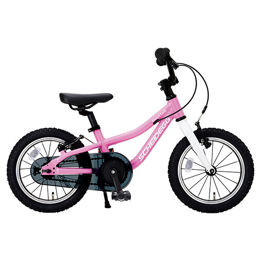 アルミフレームと軽量パーツを使用し7.20kg(ペダル・キックスタンド・補助輪付き)という、子どもが扱いやすい重量を実現したモデルです。足つき性を重視した形状のフレームや握りやすい細めのグリップなど、初めて自転車に乗る子どものための機能を備えています。キックバイクからすぐに乗れるサイズです。3~5歳用。