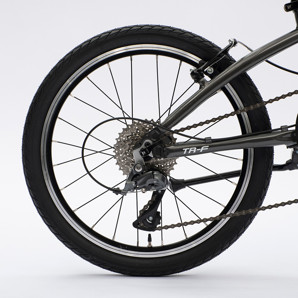 車体をコンパクトに畳むことができる、優れた軽量性と剛性を実現したフォールディングバイクです。各部にハイスペックなパーツを使用し、快適な乗り心地を実現しています。20インチホイールとワイドレンジの8段変速機を搭載し、優れた走行性を実現。アップダウンにも強く、比較的長距離のサイクリングや電車や車を利用したツーリングに適しています。専用のキックスタンドが付属します。