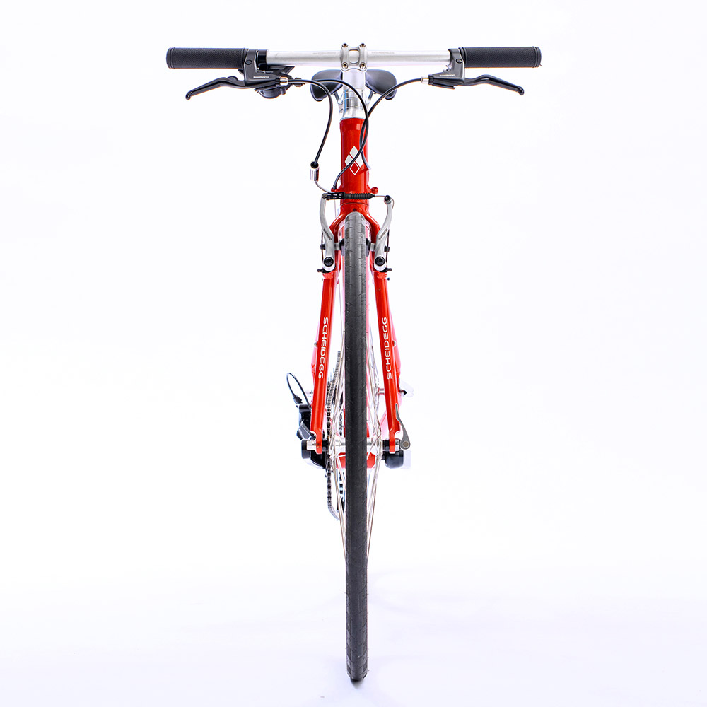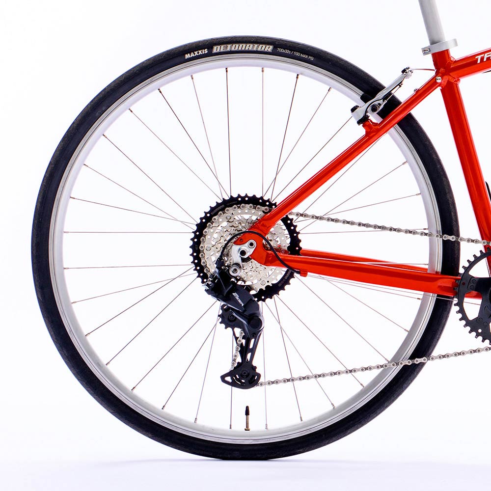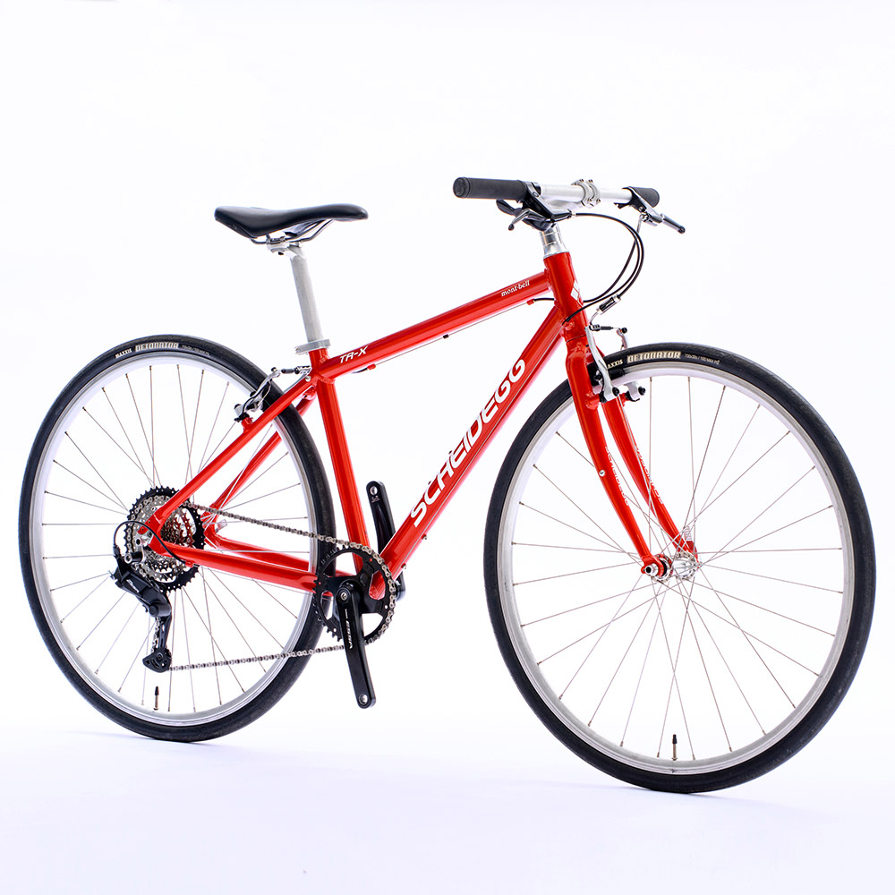 無理のない自然なライディングポジションがとれるフラットバーハンドルを採用したモデルです。ハンドル位置をやや高めに設定し、シマノ製コンポーネント「ESSA」を搭載。クランクはシフト操作がシンプルなフロントシングル仕様で、スポーツサイクルに乗り慣れていない方でも快適なライディングが楽しめます。キャリア(別売)を取りつけることで、荷物を積んで走ることもでき、街乗りからツーリングまで幅広く活躍します。