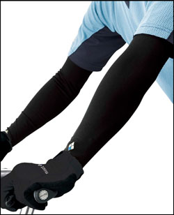 裏側を起毛させたストレッチクリマプラス®を使用した、保温性の高いアームウォーマーです。腕回りにはソフトなゴムを用い、自然なフィット感を実現。ストレッチ性にも優れるのでサイクリングの動きを妨げません。車のライトなどを反射して光るロゴ付き。