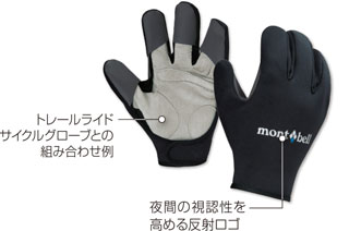 グローブの上から装着し、特に冷えやすい指先や、手の甲部分の防風性を高めるウォーマーです。甲部分には防風性とストレッチ性を併せ持った0.5mm厚のクリマプレン®を使用。ハンドルやブレーキを握りやすい形状で、手のひら部分の生地をくり抜いているため、違和感なく装着することができます。甲側には車のライトなどを反射して光るロゴ付き。手首部分に設けたベルクロでフィット感の調節が行えます。