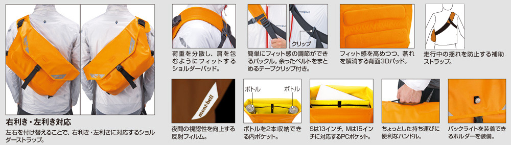 極めて高い防水性を備えたメッセンジャーバッグです。防水性と耐久性に優れた生地を使用し、接合部分にはウェルダー加工を施すことで、縫製部分からの浸水を防ぎます。多彩な機能を搭載し、天候を問わず活躍します。