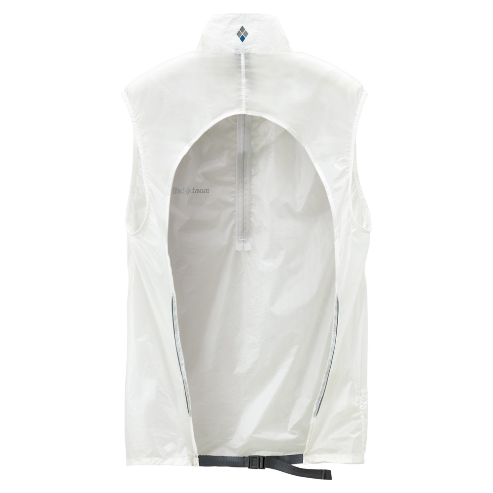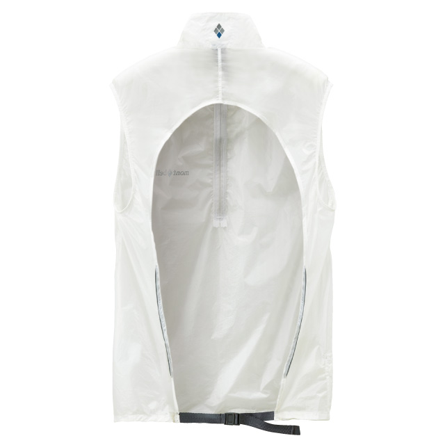 優れた軽さと、コンパクト収納を実現し、ヘルメットやバックパックを装着した状態で着脱できる、独自のエプロン型の防風ベストです。軽量性と強度を両立した素材を使用し、表面にははっ水加工を施しています。素早く着用でき、風を受ける前面に防風効果を得ることができます。