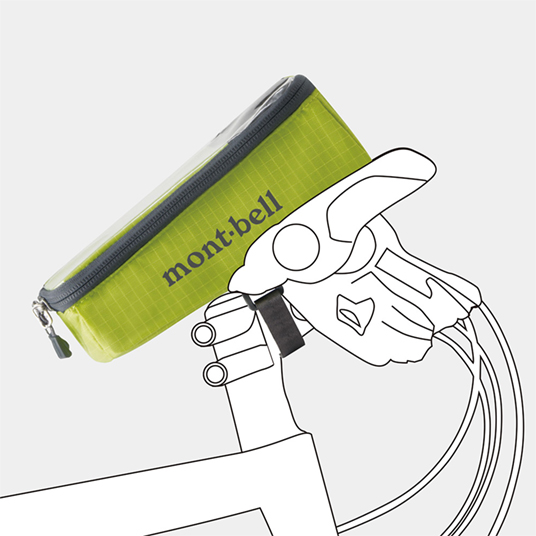 トップチューブやハンドルステムにベルクロで簡単に取り付けできるポーチです。上部にはスマートフォンの収納に適したポケットを配置。タッチパネルの操作も可能で、荷室にはバッテリーのコードが引き出せるスリットを設けています。車のライトなどを反射して光るロゴが夜間の視認性を高めます。
