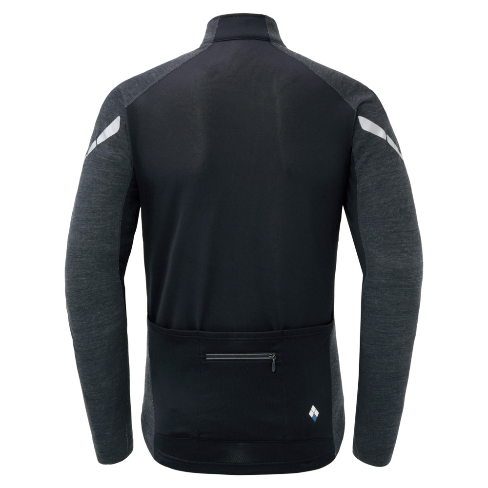 肌寒い時期は1枚、冬季にはインナーとして活躍するジャージです。前面には汗冷えしにくいメリノウールプラス™、背面には通気性を備えた素材を使用することで、保温性と蒸れにくさを両立しました。汗を素早く吸水拡散するため、長時間の走行でも快適な着心地です。