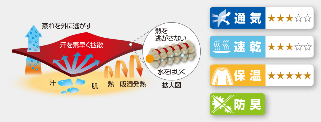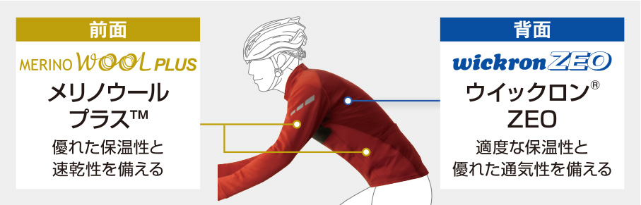 【素材】(前面)メリノウールプラス™(背面)ウイックロン®ZEO[ポリエステル]