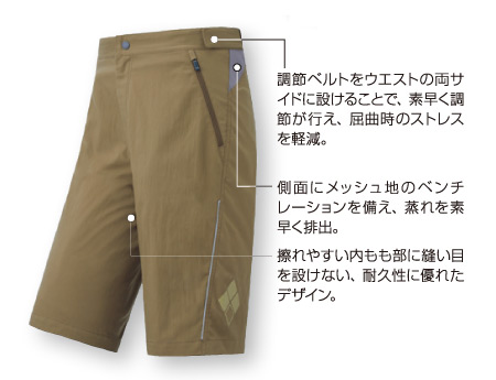 さまざまな機能を搭載したマウンテンバイク用ショーツです。抜群の耐久性とストレッチ性を兼ね備える生地を使用することで、快適なライディングを実現しました。プロテクターの上からでも着用できる、ゆったりとしたシルエットです。