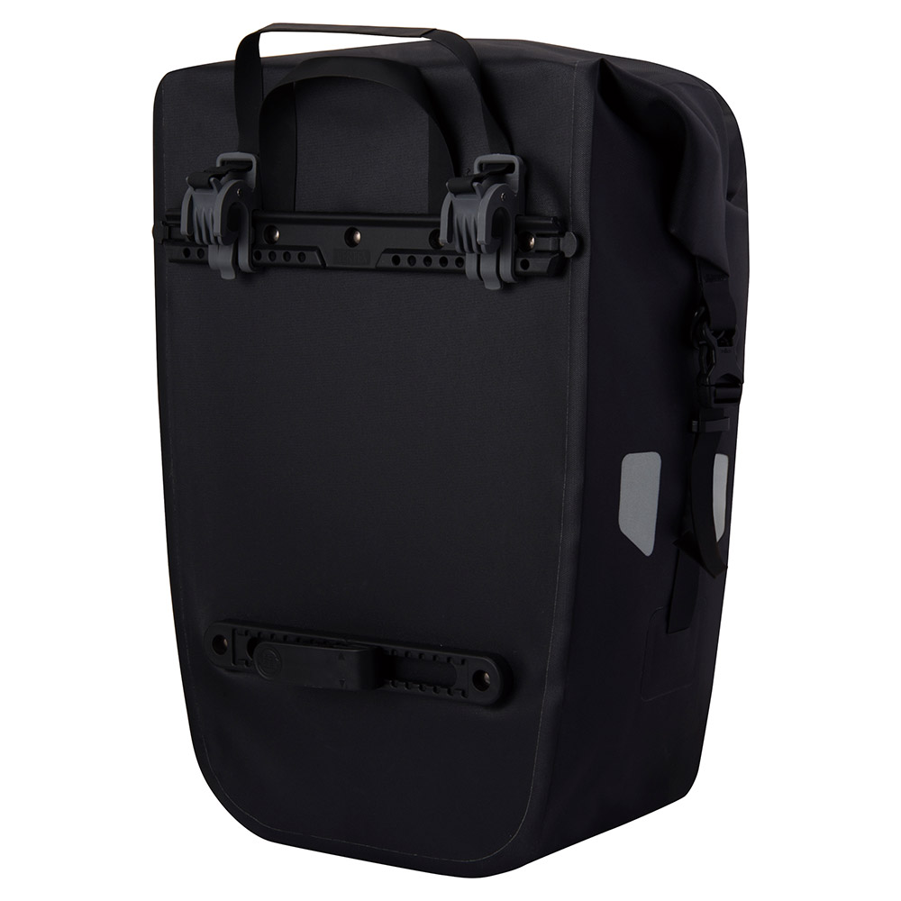 防水性に優れたサイドバッグです。出し入れ口を3回以上折り返しバックルを留めることにより、高い防水性を得ることができます。付属のアタッチメントをキャリアにフックするだけで、前輪・後輪のキャリアに簡単・確実に装着できます。ツーリングから通勤まで幅広く活躍します。
