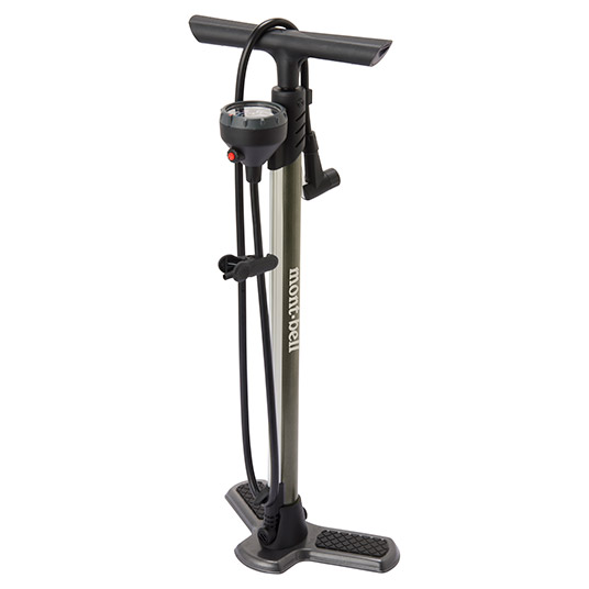 仏・米・英式バルブに対応したフロアポンプです。仏式と米式を兼用できるレバー式ヘッドにより、切り替えの手間を軽減しています。視認しやすい大型の空気圧ゲージと空気圧調節ボタンを装備。容易に空気圧の調節をすることができます。