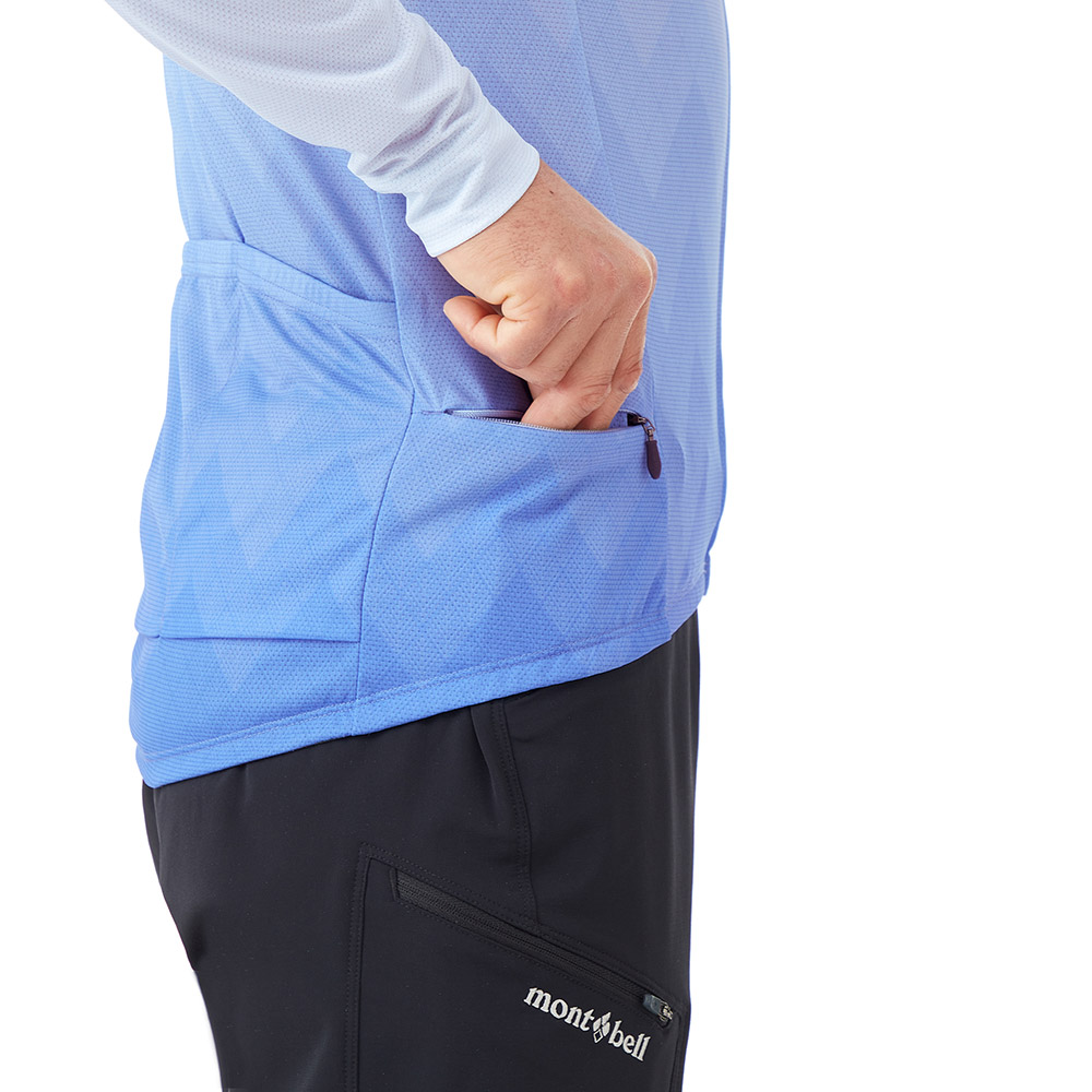 優れた通気性と吸水拡散性を備え、真夏でも快適な着心地のサイクルジャージです。レースシーンを想定し、風の抵抗を減らすタイトなシルエットながら、ストレッチ性に優れているので、ライディング時の動きを妨げません。腕の日焼け対策にも有効です。