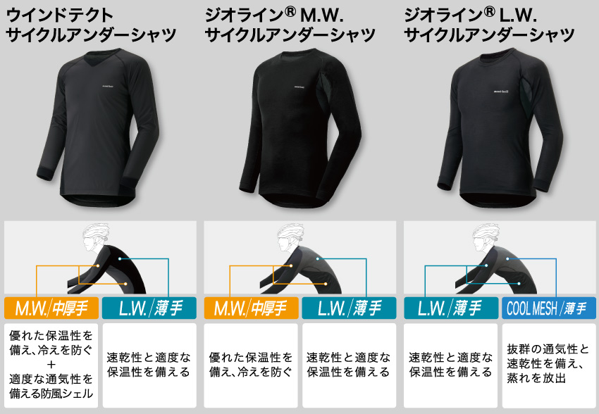 速乾性に優れる汎用性の高い薄手モデルです。前面には適度な保温性・速乾性を備えたジオライン®L.W.を使用。背面には通気性と速乾性に優れたジオライン®クールメッシュを使用しています。においの発生を抑える制菌効果を備えています。タイトなシルエットながらも、ストレッチ性に優れ、激しい動きにも快適にフィット。前傾姿勢でも腰が露出しないロングテールデザインです。