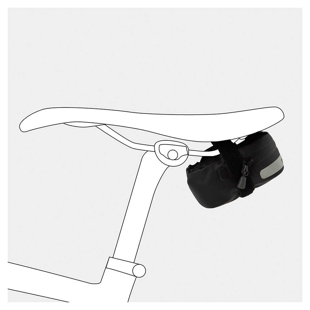 最小限のパンク修理キットを入れるための小型のサドルポーチです。ガスボンベ、タイヤレバー、交換用チューブ、工具などが入ります。防水性に優れた生地の縫い目をウェルダー加工(熱溶着)で接合し、縫製部分からの浸水を防ぎます。反射材付き。
