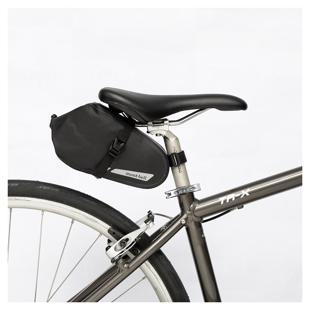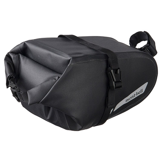 出し入れ口を折り返してバックルを留める気密性の高い仕様で、工具類など、濡らしたくないアイテムの収納に適したサドルバッグです。シートピラーにベルクロテープを巻き付け、サドルレールにバックル付きベルトを留めるだけで簡単に装着することができます。車のライトなどを反射して光るプリントを施し、視認性を高めています。