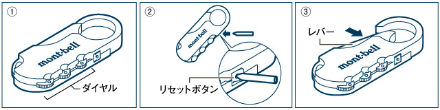 ①ダイヤルを回して解錠番号に合わせます。(出荷時は0-0-0に設定されています。)