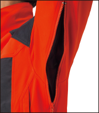 衣服内の蒸れを素早く放出するピットジップを装備。虫や木屑の侵入を防ぐメッシュ付き。