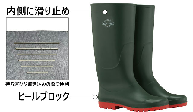ふくらはぎ部分の内側には、滑り止めを配置。ヒールブロック付きで脱ぎやすい仕様です。