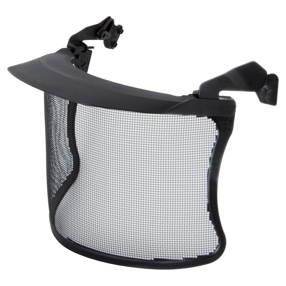 ロガーヘルメット(#1132195、#1132227)に対応する日除けバイザーと一体型のフェイスシールドです。堅牢な金属メッシュにより、木くずや草・小石の飛来から顔を守ります。使用しないときは跳ね上げることができます。